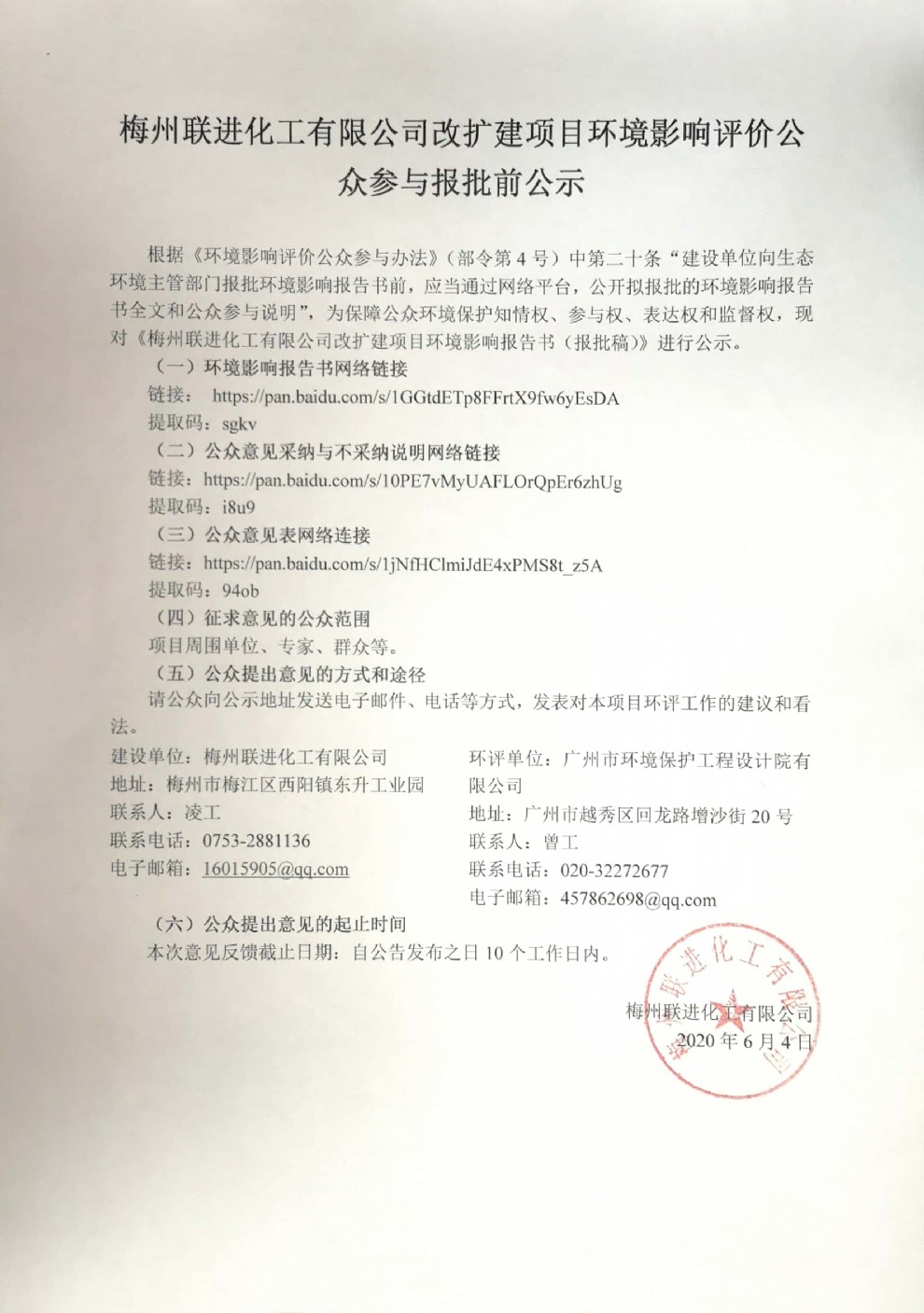 梅州聯(lián)進(jìn)化工有限公司改擴(kuò)建項(xiàng)目環(huán)境影響評(píng)價(jià)公眾參與報(bào)批前公示